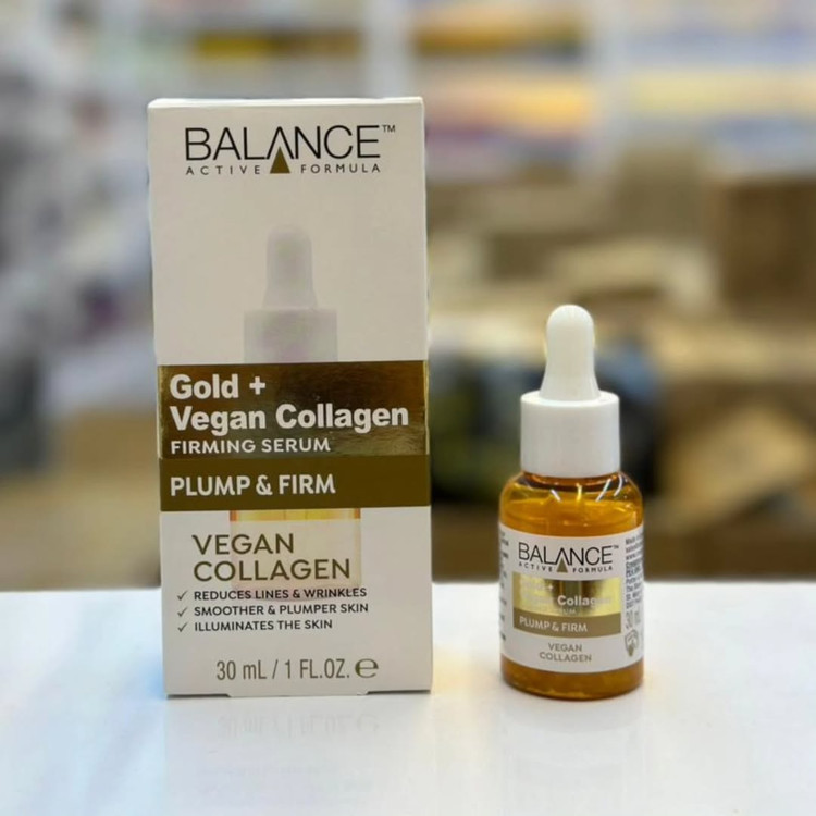 سرم سفتکننده Balance Active Formula Gold + Vegan Collagen برای کاهش خطوط و چین و چروک، صاف و حجیمتر کردن پوست و روشن کردن آن استفاده میشود به دلیل وجود کلاژن و ترکیبات سفتکننده، به بهبود ظاهر خطوط ریز و چین و چروک کمک میکند. به افزایش خاصیت ارتجاعی و پری پوست کمک میکند. به درخشانتر و شادابتر شدن پوست کمک میکند. محصول #سرمویتامینسی