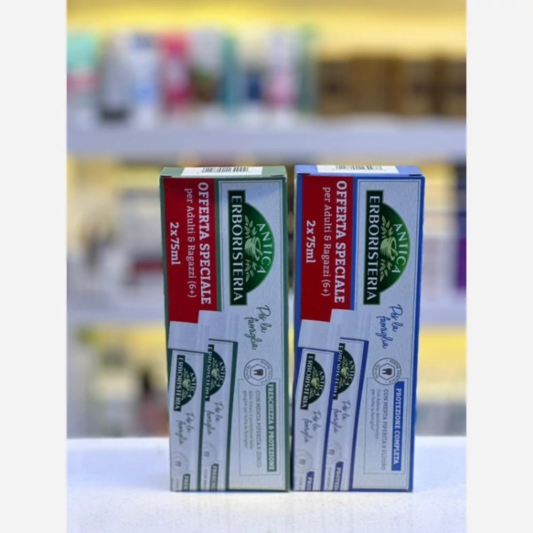 این محصول در یک بسته ویژه (Offerta Speciale) با دو تیوب 75 میلیلیتری ارائه شده که برای استفاده خانوادگی (Per la famiglia) مناسب است.